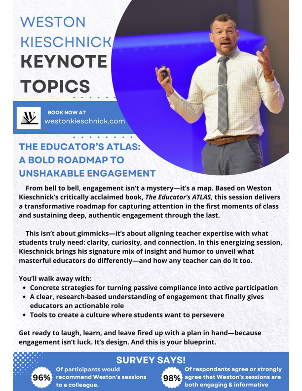 Weston possesses an innate ability to connect with educators, inspiring them to embrace actionable strategies that elevate teaching and learning.